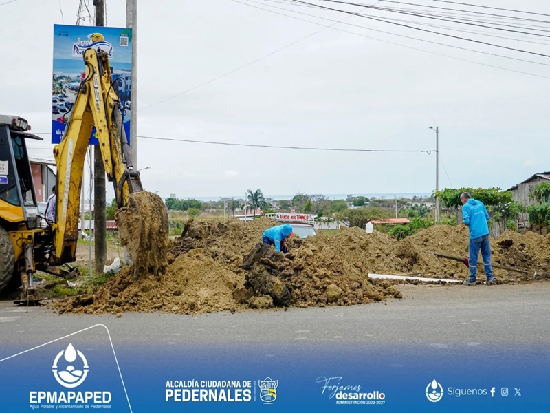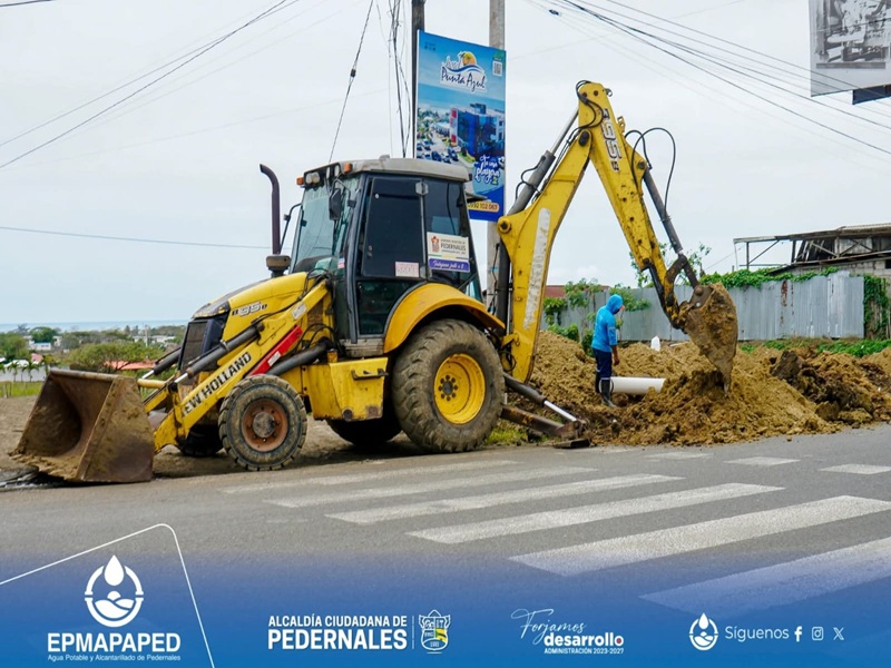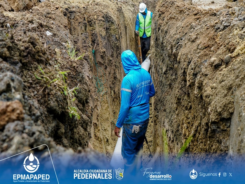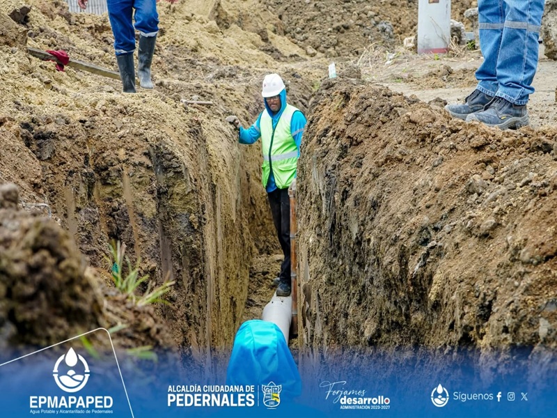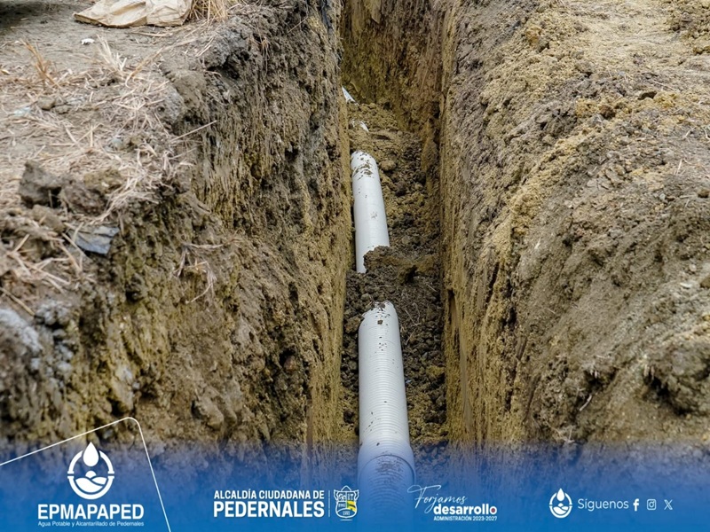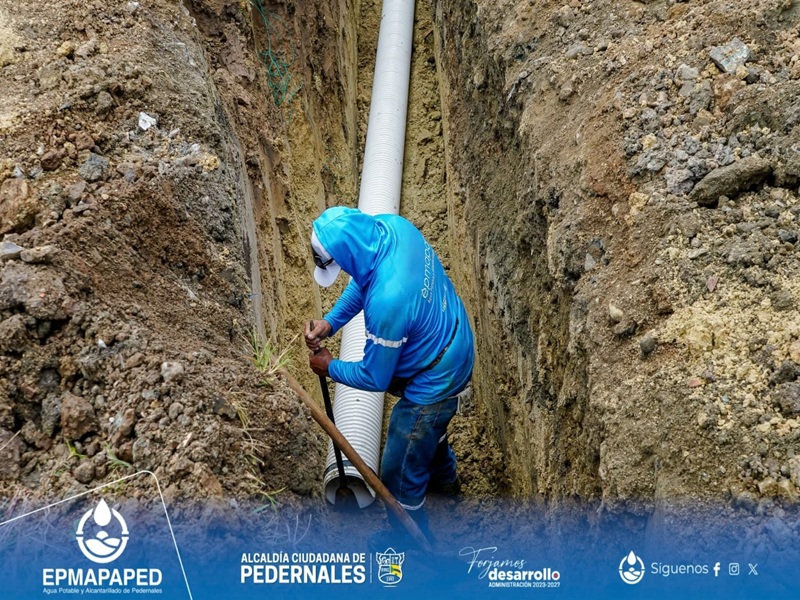 Gracias al trabajo coordinado entre la Alcaldía de Pedernales y la EPMAPAPED, avanza la instalación de una nueva tubería de 250 mm para el sistema de alcantarillado sanitario en la Lotización Sabando.