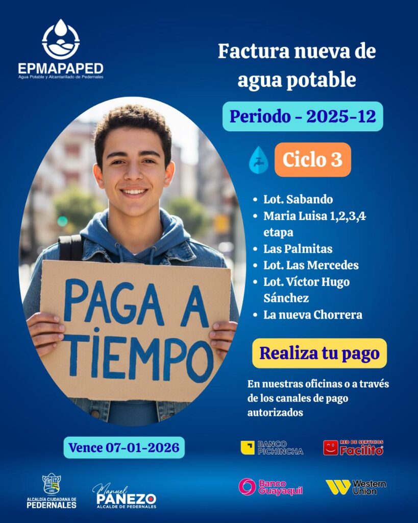 ¡Atención usuarios del Ciclo 3! Ya se encuentra disponible la nueva factura de agua potable del periodo 2025-12. Sectores: Lot. […]