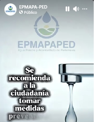 Informamos a la ciudadanía de Pedernales que, debido a la alta turbidez en los ríos COAQUE y TACHINA, se ha