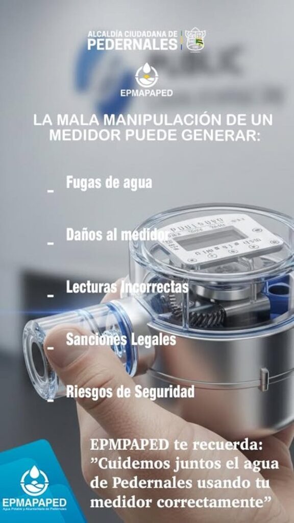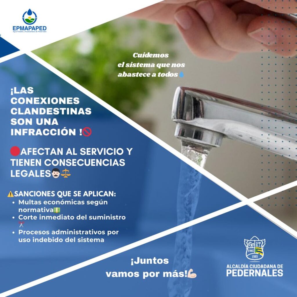 ¡Atención Pedernales! Los sectores altos de la ciudad quedarán temporalmente sin agua potable por la reparación urgente de una tubería